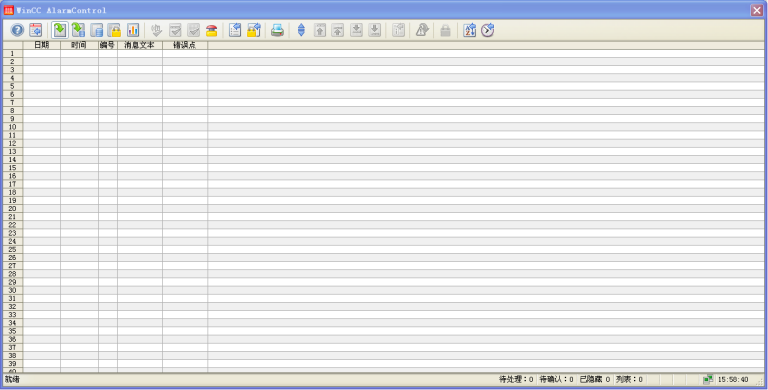Bu ekran esas olarak cihazın alarm bilgilerini görüntülemek ve bu bilgileri daha sonra görüntülemek için saklamak için kullanılır. Şekilde gösterildiği gibi, tüm alarmların alarm süresi, onaylanmış süresi, alarm mesajı ve alarm bitmesi süresi vardır. Bir alarm göründüğünde, operatör üzerine tıklayarak seçebilir ve ardından alarmı onaylamak için "Onaylanan" düğmesine basabilir ve alarm onaylanan süresi görüntülenir. Alarmların sadece meydana geldiklerinde teyit edilebileceğini belirtmek önemlidir. Tek bir ekranda görüntülenemeyecek çok fazla alarm varsa, ekran “yukarı çevir” ve “aşağı çevir” düğmeleri kullanılarak ters çevrilebilir.